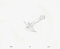 Again, optimizing for efficiency, the cleanups were done on the same sheets of paper as the roughs, simply by rubbing down the sketchy lines and tightening up the drawings. Therefore, no rough animation drawings exist from the film, and I'll just have to share with you some of my scruffy cleanups.