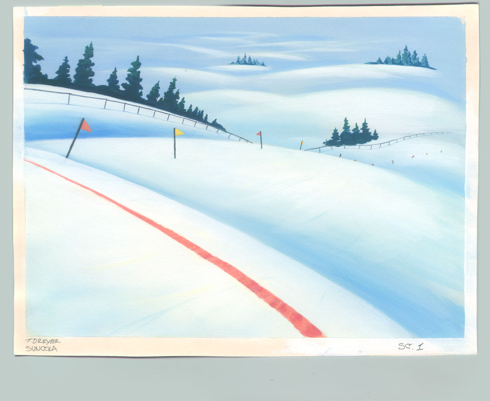 SunCola "Skiing" storyboard by Dan Harder, 1997.